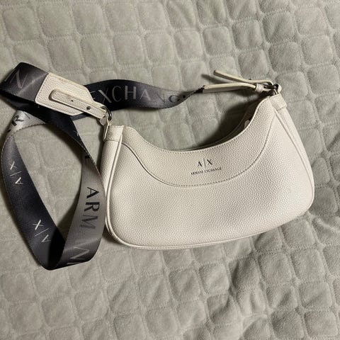 Guess skulderveske i kunstlær for dame. Vesken har lys, ensfarget overflate med struktur og metalliske detaljer. Justerbar skulderrem gjør at vesken kan bæres komfortabelt på skulderen. Logo og små anheng med «Guess» og «1981» er festet ved glidelåslukkingen. Passer til hverdagsbruk og enklere anledninger der det er behov for en mindre veske til nødvendigheter som mobil, nøkler og lommebok.