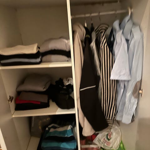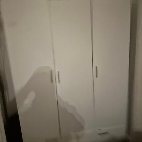 Pent brukte garderobeskap som fulgte med leiligheten ved overtagelse fra utbygger, derfor er merke ukjent. Mål: H 210cm, B 100cm, D 60cm.