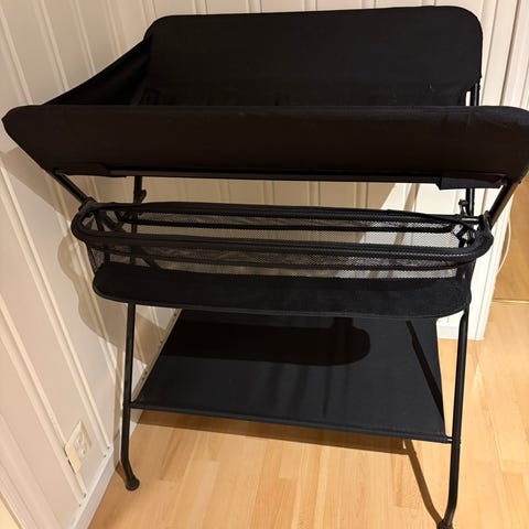 Carena stellebord i sammenleggbart design. Stellebordet har en tekstil stelleflate og ramme i metall. Under stelleflaten er det en hylle for oppbevaring av bleier, kluter og annet stelleutstyr. Egnet til stell av baby og småbarn, og kan enkelt flyttes eller settes bort når det ikke er i bruk.