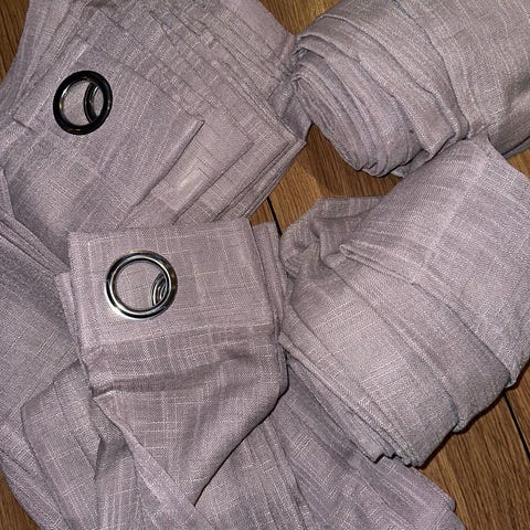 1x 140x220cm grå anthoni gardin fra KID med maljer for enkelt oppheng.