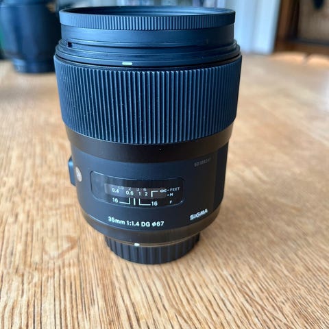 Strøken Sigma 35mm f/1.4 Art selges. Objektivet er svært pent behandlet og fremstår som nærmest nytt. Leveres med original emballasje og alt tilbehør slik det kom fra butikk.