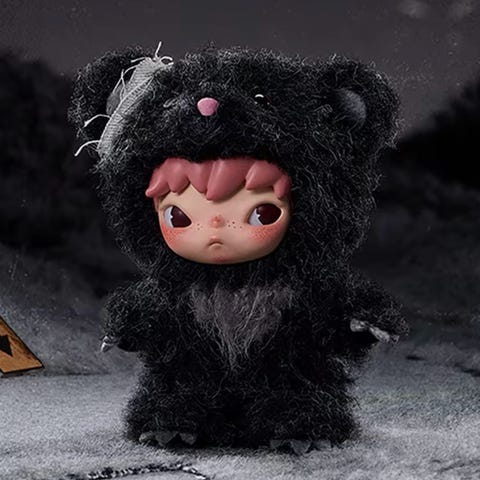 Esken er åpnet i bunnen (kan limes eller tapes igjen) for å sjekke kortet. Alt følger med; eske, kort, bamse. De kommer i «blind bag», dvs jeg får ikke åpnet de og tatt bilde av de, men til gjengjeld er den helt uåpnet i posen sin! 🥰