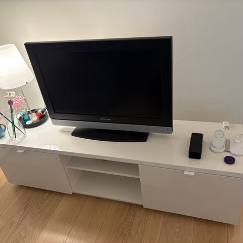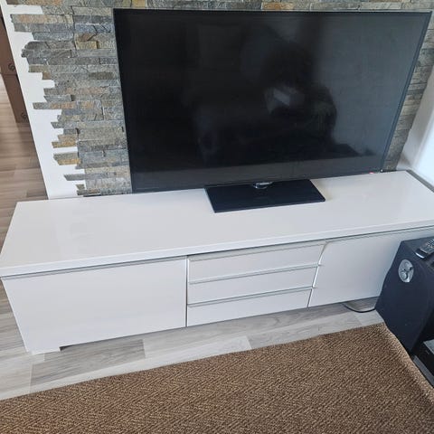 Vegghengt tvbenk/hylle fremtår pent holdt. Ble tatt ned av vegg pga oppussing. Byttes tilfordel for større skap. Tv kan følge med om ønskelig🙂
