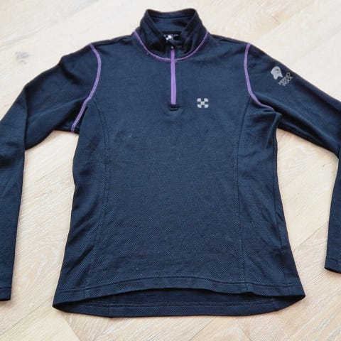 Haglöfs genser for dame i størrelse M. Genseren er svart og laget i polyester. Modellen har lang arm, høy hals og glidelås i halsen. Passer som mellomlag eller til hverdagsbruk der det er behov for et lett og varmt plagg.