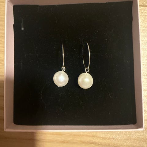Helt nye. Kun prøvd på. Ekte ferskvannsperle på sølvstift. 10 mm. Fin hvit farge. Kan sendes mot porto. Se mine andre annonser.
