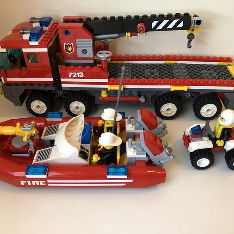 Settet består av en stor rød brannbil med tilhenger og avtakbar kommandosentral, samt et terrengkjøretøy/båt med flere hjul. Kjøretøyene har detaljer som førerhus, vinduer, lys og utstyrsfester og avtagbart utstyr.Kommandosentralen har innvendige arbeidsplasser og tak som kan åpnes. Det følger med flere minifigurer i brannmannsutstyr og tilbehør til utrykningsarbeid.