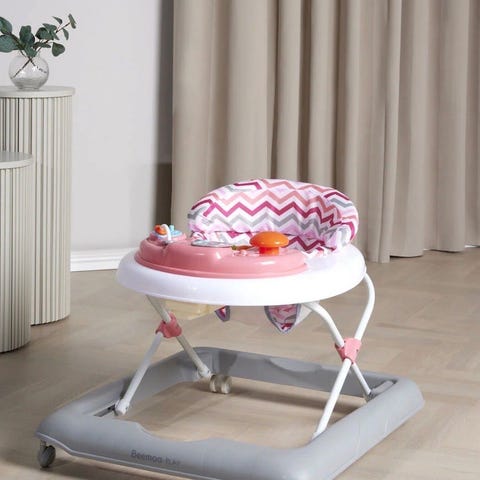 Barnet kan snurre rundt i stolen for tilgang til lekene rundt hele. Trekket kan tas av for vask. Trenger snart nye batterier (AA) .