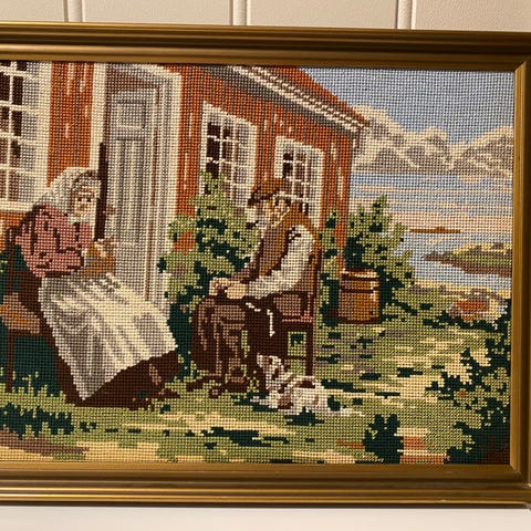 Pent brodert bilde fra 1960 tallet med ramme.