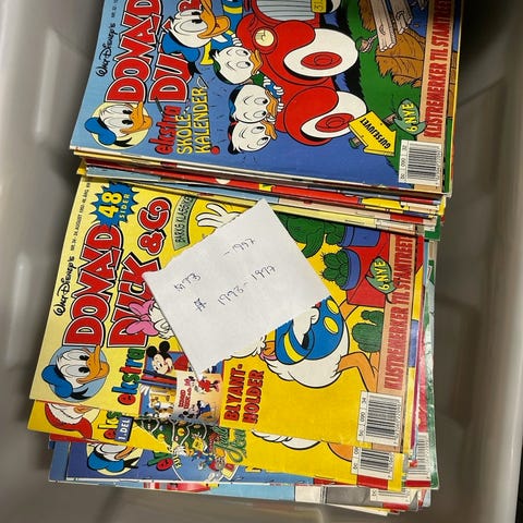 Magasinene er i varierende stand (fra godt brukte til pene eksemplarer - se bilder), men helheten er flott for en som ønsker en solid Donald-pakke til en hyggelig pris.