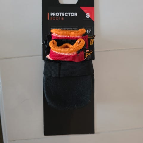 Hundesokker i brun farge med borrelåslukking og refleksdetalj øverst. Fra hundesokken.no