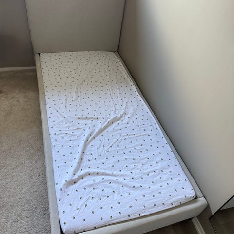Sengen forvandles enkelt til et tipitelt med hjelp av Childhome Sengegardin Tipi (inngår ikke), og gir barnet ditt en ekstra herlig teltfølelse.