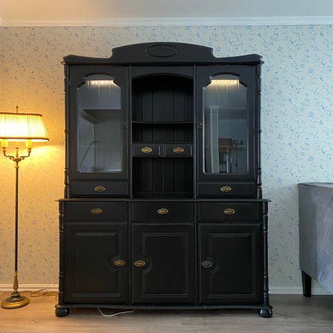 Flott vitrineskap med glassdører og skuffer