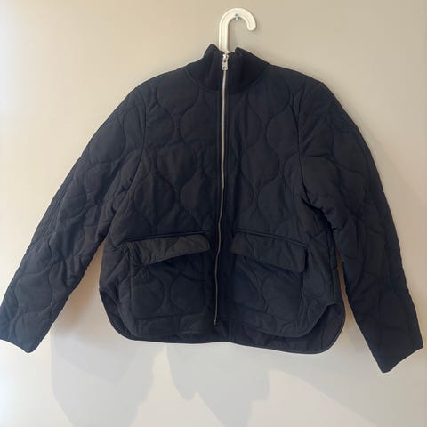 H&M Divided jakke for dame i størrelse XXS. Jakken er svart og laget i polyester. Den har hette og vattert utførelse som gir ekstra varme. Ytterstoff og fôr er i polyester, med elastiske partier nederst på ermene for bedre passform. Passer som ytterjakke i kjøligere vær. Jakken er en kort modell.