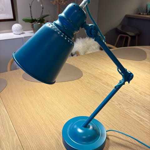 Selger FORSÅ arbeidslampe. Kjøpt på IKEA. Lys grønn. Lyspære følger med. Et par merker på lampehode, se bilde. Kan hentes i Sandefjord eller sendes.
