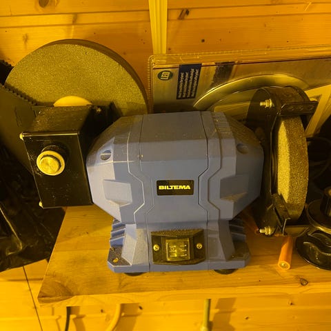 Kellen Tools bånd- og skivesliper. Kombinert slipemaskin med båndsliper og skivesliper i én enhet, egnet for sliping og forming av ulike materialer i verksted og hobbybruk. Maskinen leveres med beskyttelsesskjerm og anlegg for bedre kontroll under arbeidet. Passer til generell tre- og metallbearbeiding i hjem og hageprosjekter.