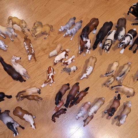 Det medfølger også en hestevogn som noen av de mellomstore hestene passer til.