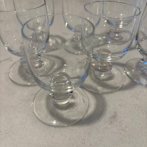 6 stk Arvid drammeglass, høyde 7,5 cm og 1 stk Arvid likørglass, høyde 6 cm.