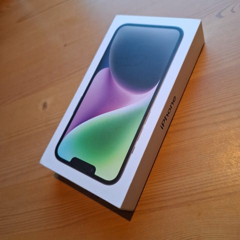 Apple iPhone 14 smarttelefon med 128 GB lagringskapasitet. Modellen har todelt kamerasystem på baksiden og frontskjerm som dekker nesten hele fremsiden. Fargen fremstår som svart. Egnet for daglig bruk, foto, video og apper med god lagringsplass til filer og medier.