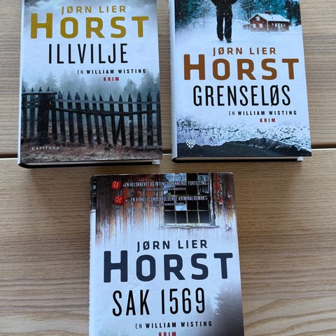 Jørn Lier Horst William Wisting krimbøker i paperback. Pakken inneholder fire titler: «Grenseløs», «Sak 1569», «Nøkkelvitnet» og «Katharina-koden». Alle bøkene er romaner i William Wisting-serien og er norske kriminalromaner. Format: pocket.