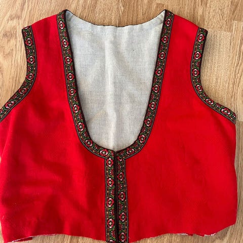 Bunaden var sist brukt på eier (min mor som også selv har brodert og montert den fine bunaden på folkehøyskole for ca 50 år siden) som da var ca 170 cm høy.