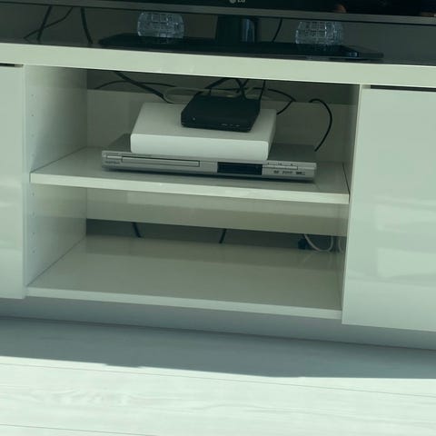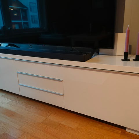 Pent brukt TV-benk med god plass til oppbevaring. 2 skaper + 1 skuff.