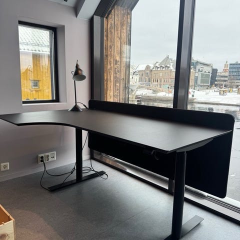 Selger et IKEA skrivebord med elektrisk hev senk funksjon. Bordet fremstår som helt nytt og har stått ubrukt i bod. Ingen slitasje eller bruksmerker.