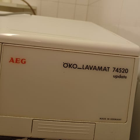 AEG Lavatherm 5300 tørketrommel med utlufting. Modellen har frontbetjening med programvelger og trykknapper for ulike innstillinger. Kabinettet er i lys farge med standard bredde som passer under de fleste benkeplater eller ved siden av vaskemaskin. Egnet for vanlig husholdningsbruk til tørking av klær og tekstiler som tåler trommeltørking.