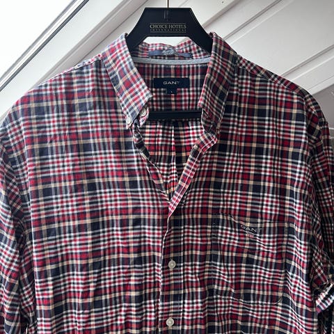 Gant The Gingham skjorte for herre i størrelse L. Skjorten er rød- og hvitrutet og laget av bomull. Modellen har regular fit og klassisk krage. Passer til hverdagsbruk og mer formelle anledninger, og kan brukes alene eller under genser eller jakke.