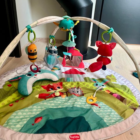 «Sett med 6 trekasser som kan stables til et tårn og puttes inni hverandre. På kassenes sider er det trykt dyr, kjøretøyer, frukt og tallene 1-6. Barnet lærer mer om størrelser, farger, gjenkjennelse av motiver og finmotorikken fremmes».