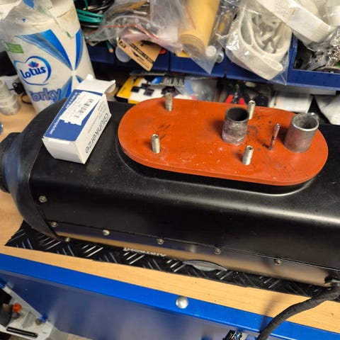 Eberspächer D5L C luftvarmer for diesel, 12V. Enheten er beregnet for oppvarming av kupé eller lasterom i kjøretøy eller båt. Varmeren leveres med, slangeklemmer og smådeler som vist på bildene. Kapslingen er i svart materiale, og varmeren har tilkoblinger for drivstoff, strøm og styring på undersiden. Passer for 12V anlegg der det er behov for dieselbasert luftvarme.