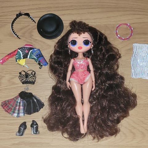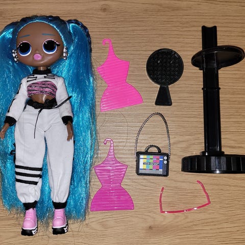 Sjelden OMG-dukke med tilhørende veske, øredobber og magasin + 3 plagg og sko fra en annen sjelden OMG-dukke!