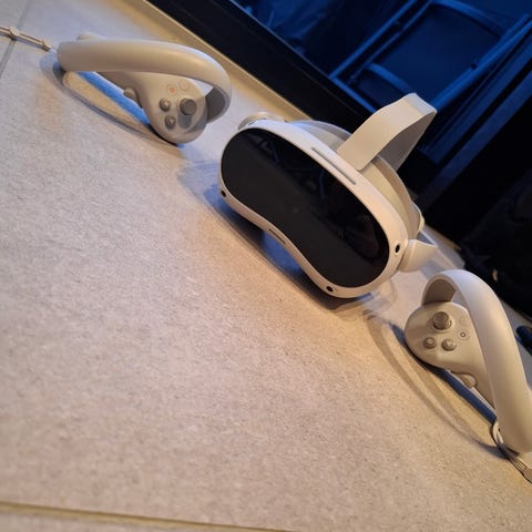 Selger en Pico 4 VR (128 GB) i meget god stand. Dette er en all-in-one VR-brille, så du trenger ingen PC eller konsoll for å komme i gang – alt kjører direkte på enheten.
