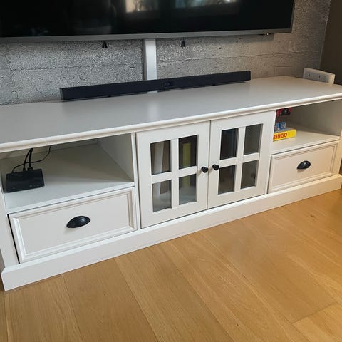 Folie og stål. Push-open-skuff. B120 x H40 x D33 cm Hentes på Klavestadhaugen