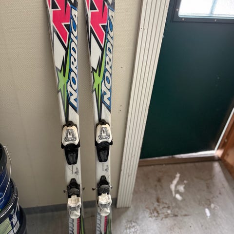 Nordica alpinski i blå farge med monterte bindinger. Egner seg til alpinkjøring i preparerte bakker. Skiene er av eldre dato (vet ikke eksakt alder), men er fremdeles i bra stand og fullt brukbare med gode såler. Det står 150 på siden av skiene, men måler dem til ca 144 cm. Må hentes.