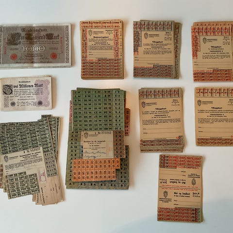Unik samling rasjoneringskort og krigsdokumenter fra Bergen. Gi bud.