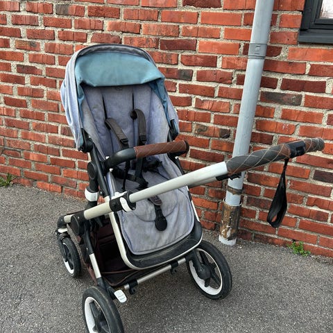 Ramme til vogn gikk i stykker og er litt dyr å erstatte, så da selger vi delene vi har igjen så andre slipper et lignende problem. Må hentes.