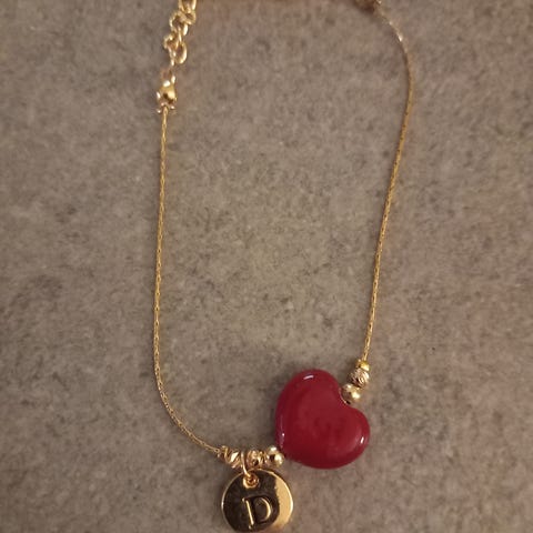 Guess armbånd til dame i stål. Armbåndet har rød snor og en midtstilt lenkedetalj i stål med hjerteformet ledd og gravert Guess-logo. Justerbar lukking med rund stålknapp og metalltupper på snorendene. Passer som et enkelt smykke til hverdagsbruk.