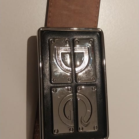 Dolce & Gabbana belte for herre i svart. Beltet har en markant gullfarget DG-spenne i metall foran. Klassisk, glatt skinnrem som passer til bukser med standard beltehemper. Beltet er 95cm og brukt kun 1 gang. Beltet er kjøpt på Dolce & Gabbana i Roma for 450 euro (5150kr). Selges for 4000kr.