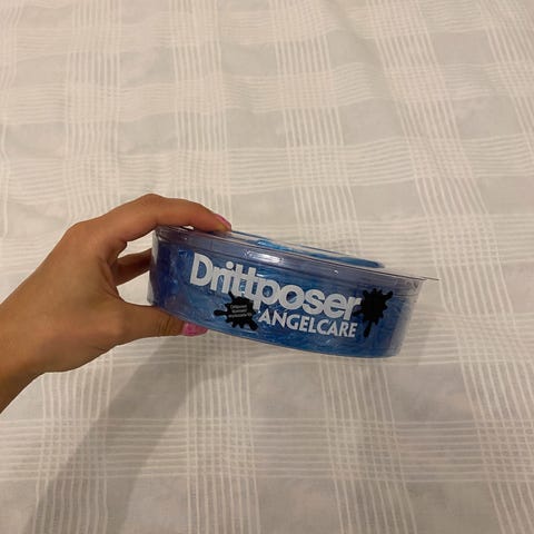 Angelcarebøtte i god stand med 3 uåpnet pakker med refill selges. Noen bruksmerker på toppen av lokket ellers ingen anmerkninger.