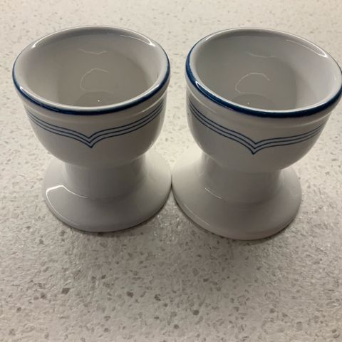 Eggeglass i porselen i hvit farge med blomstermønster og gullkant. Uvanlig.