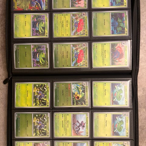 Her er det alt av vanlige kort, reverse holo, EX kort (Charizard mangler) og noen hits.