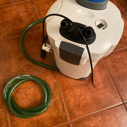 Slangene har kraner som kan justere/ stenge vanntilførselen. Slanger er store 16-22 mm fra Eheim.