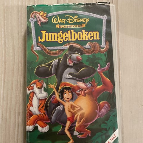 Walt Disney Jungelboken VHS-film med norsk tale. Animasjonsfilm basert på Rudyard Kiplings fortellinger om Mowgli og dyrene i jungelen. Kassetten er i VHS-format og har norsk språkversjon med norske stemmer. Egner seg for avspilling på VHS-spiller som støtter PAL-system.