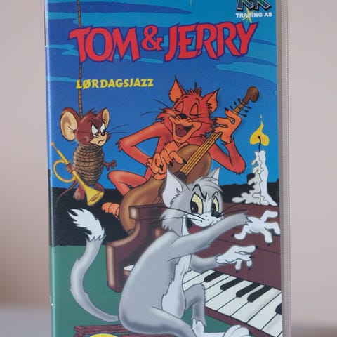 Tom & Jerry tegnefilm VHS-kassett. Videokassett med tegnefilmepisoder av Tom og Jerry. Norsk utgave, spilletid ca. 30 minutter. Egner seg for avspilling på standard VHS-spiller.