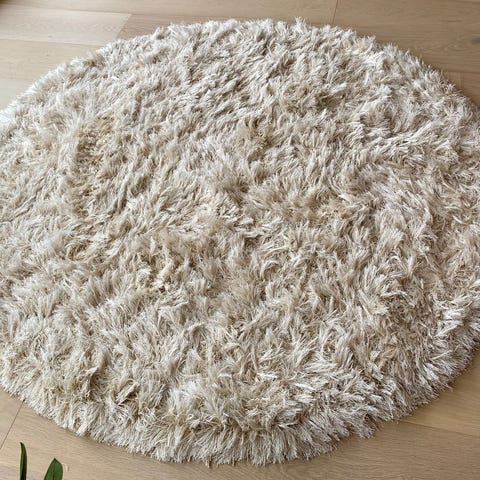 Pent brukt teppe selges i farge blå. Ser grått ut på bildet, men er lysere blå.