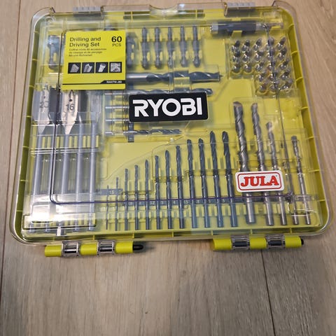 Ryobi bits og borsett. Veldig lite brukt. Det mangler en PZ1 og bitsholder. Ellers et komplett sett.