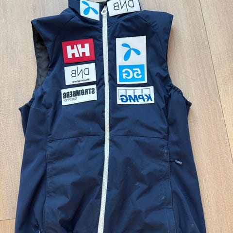 Phenix vest i størrelse 52. Modellen har høy krage og hel glidelås i front. To glidelåslommer i sidene gir plass til småtteri.