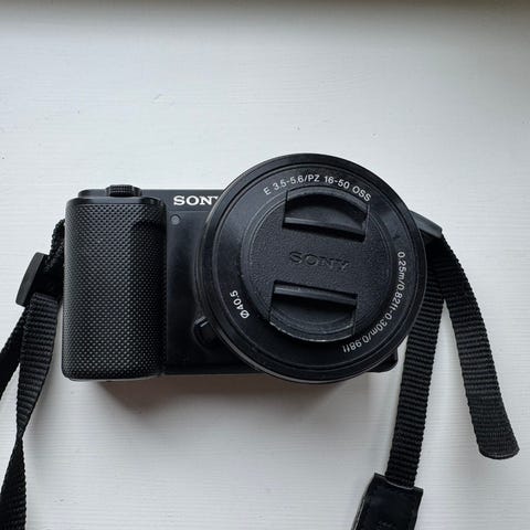 Selger et Sony ZV-E10 med 16–50mm PZ kit-objektiv. Kameraet er nesten ikke brukt og i svært god stand, men har dessverre bare blitt liggende og samle støv på hylla.
