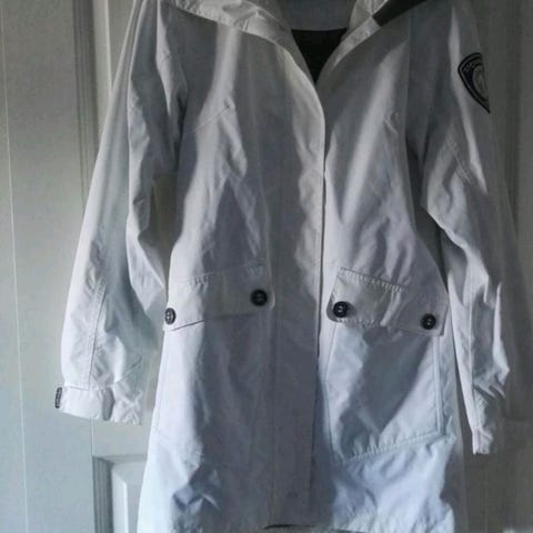 Pent brukt regnjakke fra Morild, med refleksdetaljer. Passform: A-formet med knyting i midjen.