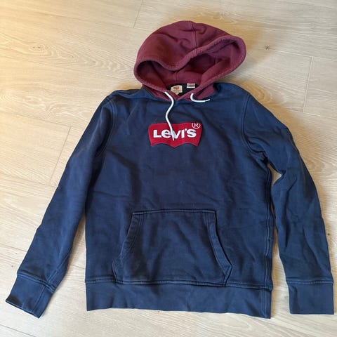 Levi’s hettegenser for herre i størrelse L. Genseren er laget av bomull og har lys blå farge. Klassisk modell med hette og snøring, samt ribbekanter ved ermer og nederkant. Passer til hverdagsbruk og fritid.